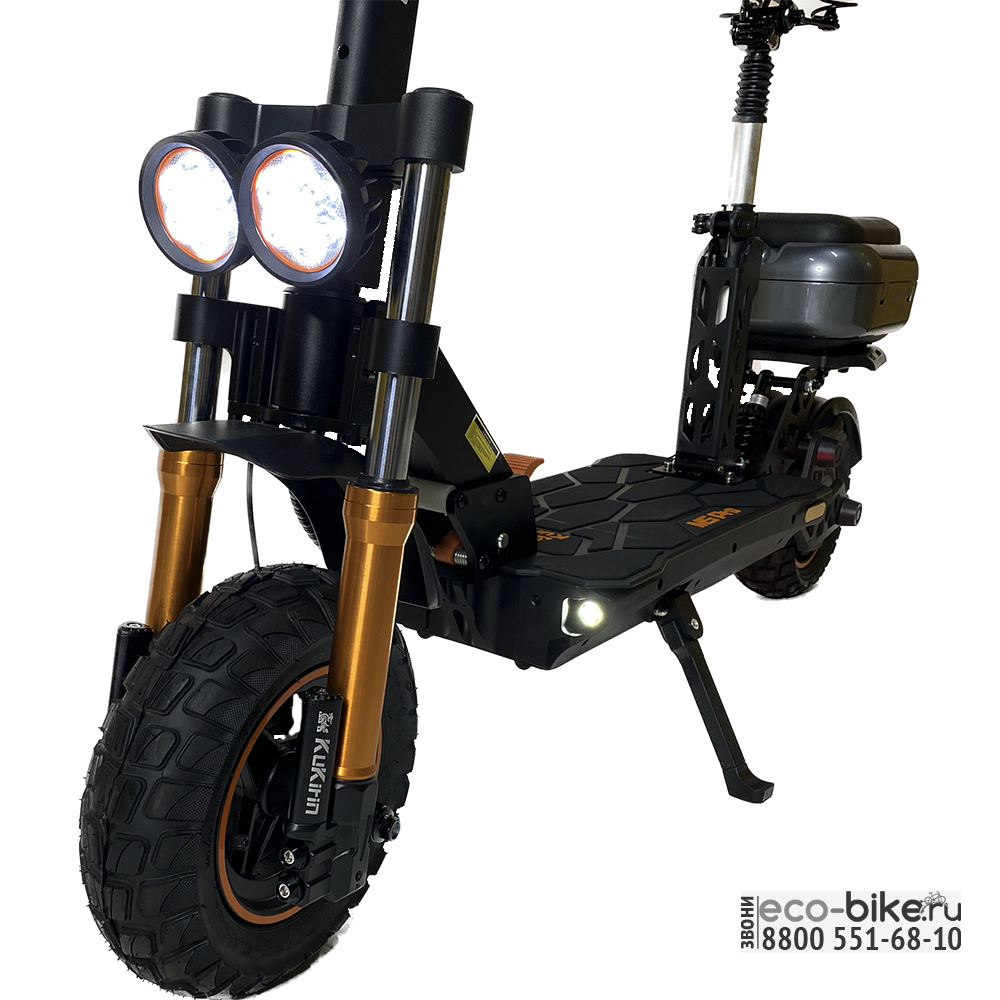 Kugoo Kirin M5 Pro оснащен современной подсветкой, включающей переднюю фару, стоп-сигнал и боковую подсветку, что делает поездки безопасными даже в темное время суток. Задний привод и механическая дисковая тормозная система обеспечивают отличную управляемость и безопасность.